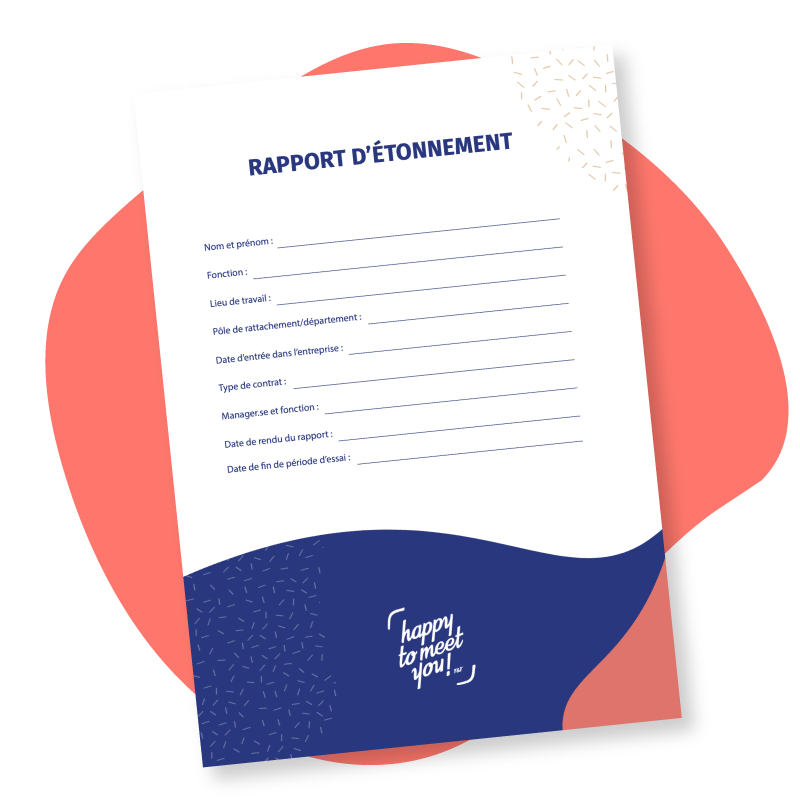 Vos collaborateurs fraichement arrivés sont de précieux alliés pour apporter un regard critique, constructif et spontané sur votre entreprise. Téléchargez gratuitement notre modèle PDF de rapport d’étonnement ; un template à remplir sur ordinateur, à imprimer ou à reproduire aux couleurs de votre entreprise pour recueillir les retours d’expérience de vos nouvelles recrues, quelques semaines après leur arrivée !