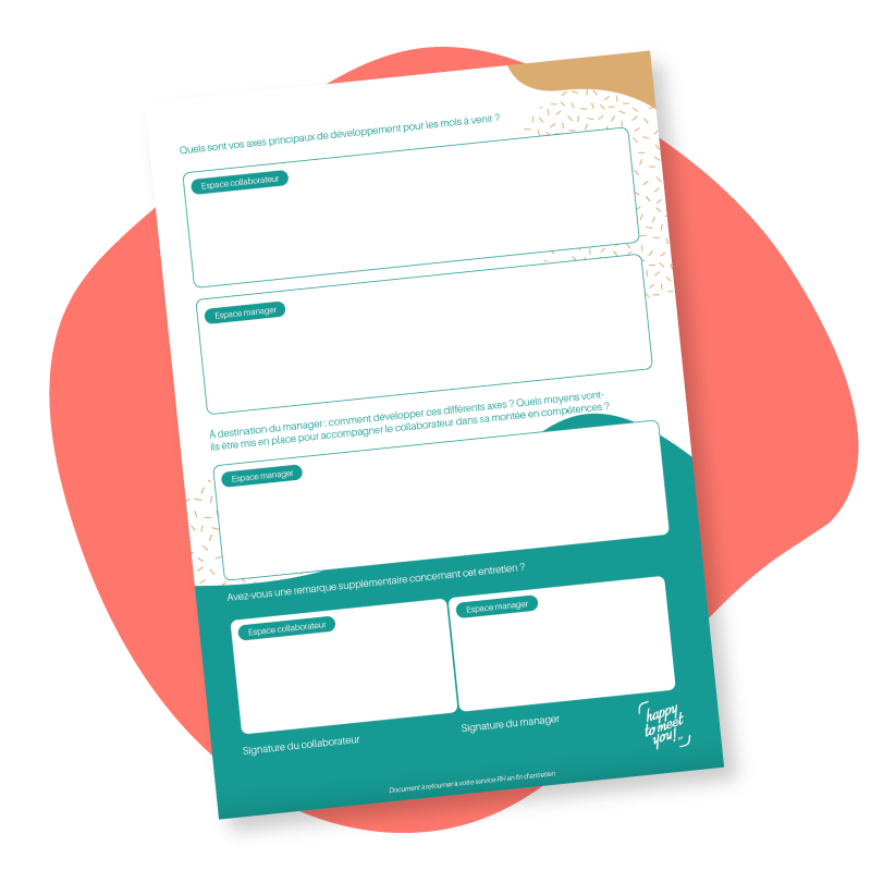Happy to meet you partage avec vous son modèle de grille de fin période d’essai. Téléchargez dès à présent le PDF !